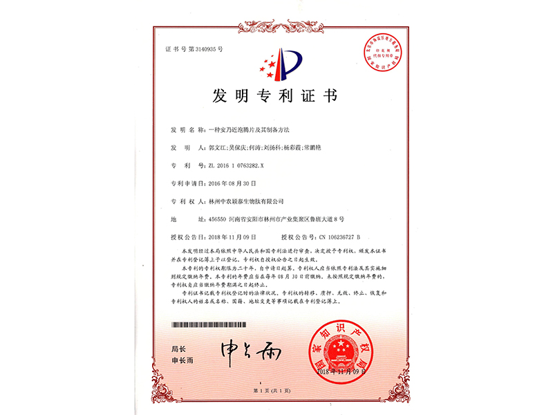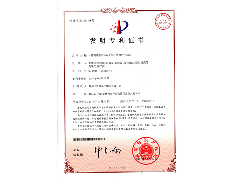發(fā)明專利證書