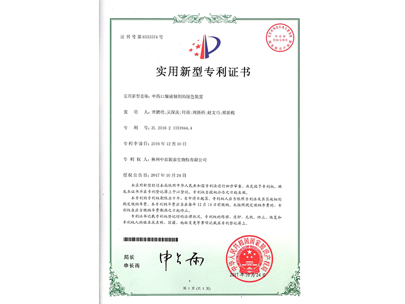 中藥口服液制劑的脫色裝置