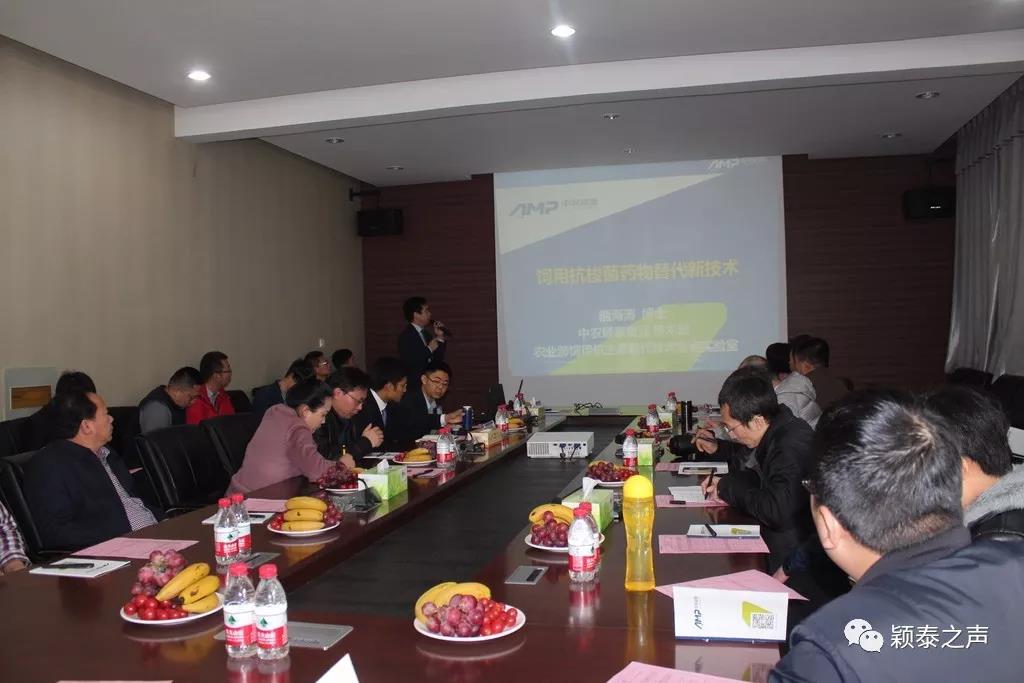 來自全國各地的30余名飼料界嘉賓相聚在此,共話無抗。中農(nóng)穎泰總裁楊育才、制造事業(yè)部總經(jīng)理劉揚(yáng)科、集團(tuán)技術(shù)總監(jiān)張江、總裁助理熊海濤出席會(huì)議。